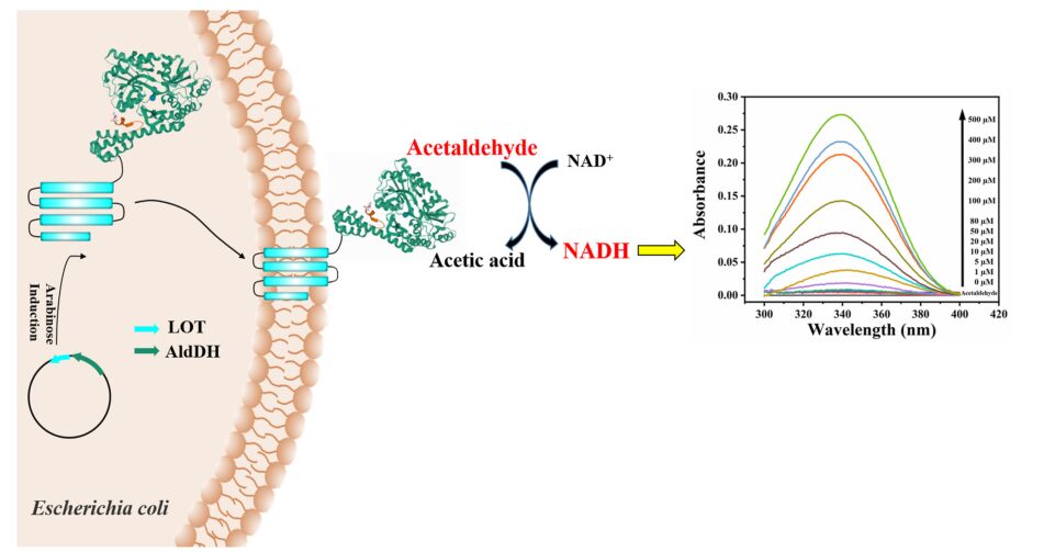 Fig. 1. Concept of the E. coli surface display system and acetaldehyde biosensor