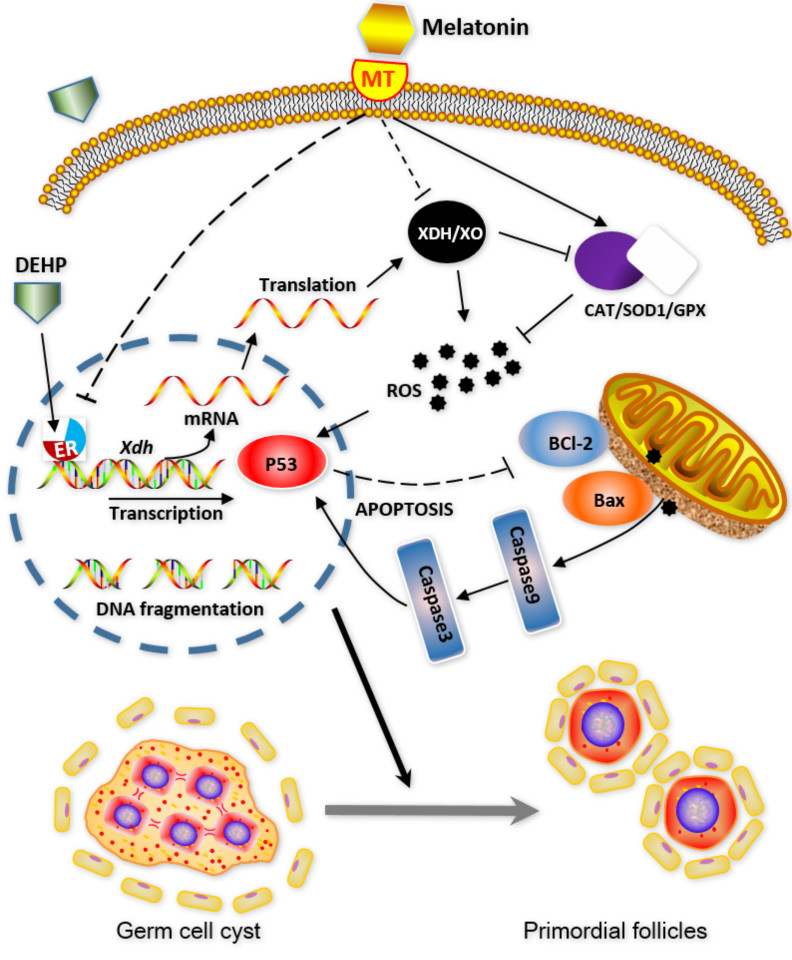图:褪黑素经XDH通路缓解DEHP暴露所诱发的原始卵泡形成障碍。