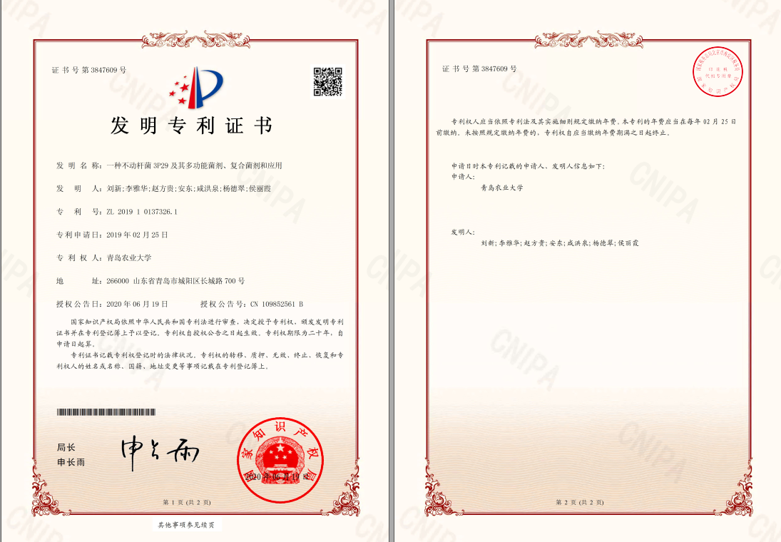 刘新教授课题组长期从事植物-微生物互作与营养高效利用研究工作,致力于土壤改良和作物病害绿色防控技术的研究和开发。近4年来团队通过山东省现代农业产业技术体系平台开展研究工作,先后取得授权专利3项,发表研究论文6篇(高水平SCI论文1篇),为社会输送了30余名科技人才,团队人员成功申报国家自然基金5项,其中面上3项;以及省重大研发1项。此外,课题组自2016以来,在沂水、诸城、临朐、安丘、五莲和汪湖开展生物肥土壤保育和促生实验,服务于当地农户,先后免费提供生物肥料约总计1000 kg,以及提供技术指导50余次;同时10余次开展调研山东省肥料企业,探讨和摸索有机肥和生物肥在经济作物生产中的应用可行性。