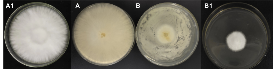 青霉菌通过产生有毒气体及通过竞争有限空间和营养等方式抑制白玉菇菌丝生长,该类霉菌易泛滥会导致食用菌工厂化生产较大规模减产。文章1从基因和蛋白表达层面上阐述了白玉菇对青霉菌生物胁迫做出的响应,以及生长过程中为适应受胁迫状态而做出的生长调整,发现6种胁迫响应机制,具体为苯、醛、酚等物质的无毒转化;谷胱甘肽代谢以减少对细胞的氧化损伤;组蛋白修饰,核苷酸切除修复,清除错误折叠蛋白,减少错误核酸和蛋白的形成;将l -赖氨酸转化为食用菌的氮源谷氨酰胺,以应对养分竞争中形成的氮限制;增强过氧化氢酶活性;细胞壁重塑。2种生长适应机制以减少菌丝的生长,包括细胞成分,如核糖体、内质网蛋白质、剪接体等,的减少;碳代谢与产能,如糖酵解和糖异生等,的减弱。