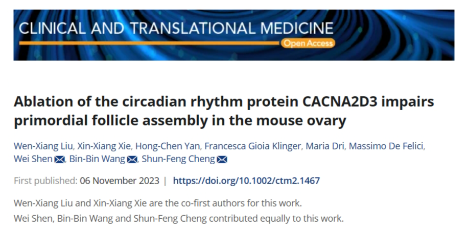 近日,77779193永利(中国)集团沈伟教授团队程顺峰教授课题组在国际著名期刊 《Clinical and translational medicine》(IF=10.6)上发表题目为“Ablation of the circadian rhythm protein CACNA2D3 impairs primordial follicle assembly in the mouse ovary”的研究论文。该研究在单细胞尺度揭示了昼夜节律蛋白CACNA2D3在卵巢原始卵泡形成中的重要作用。