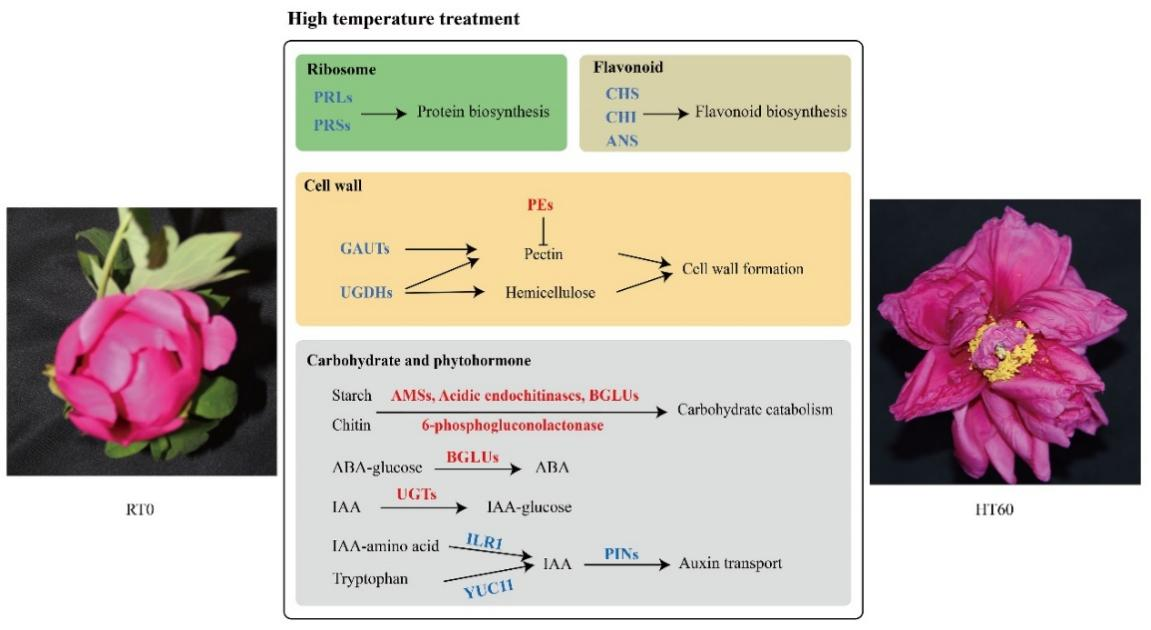 Fig. 10 Model of the putative mechanism about flower senescence induced by high temperature in tree peony