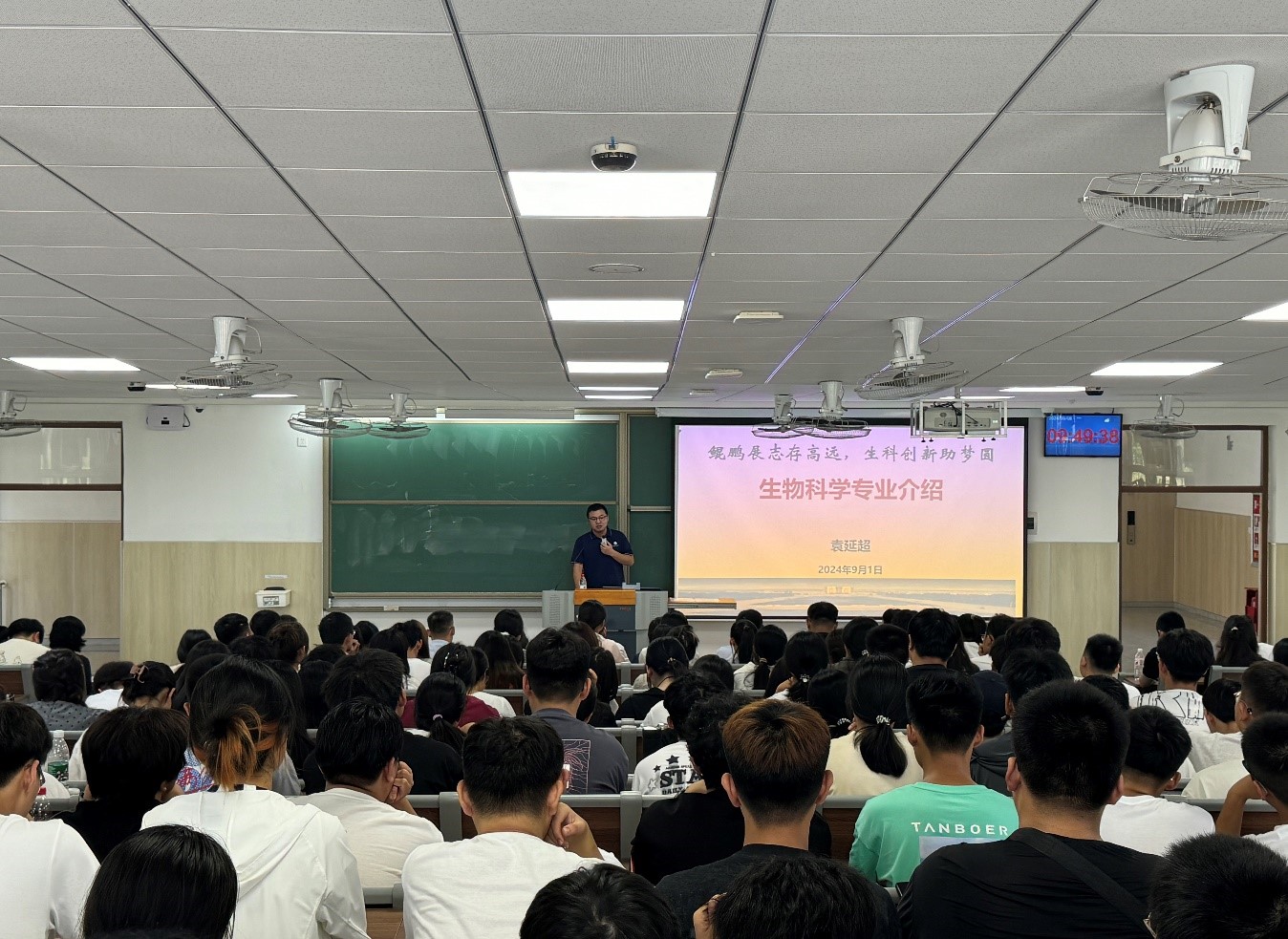 生物科学(创新实验班)专业负责人袁延超从学院师资力量、专业概况、开设课程、教学资源及考研情况进行了介绍和分析,希望新同学可以学会自我管理,瞄准目标、静心沉潜,做新时代奋斗的新青年。