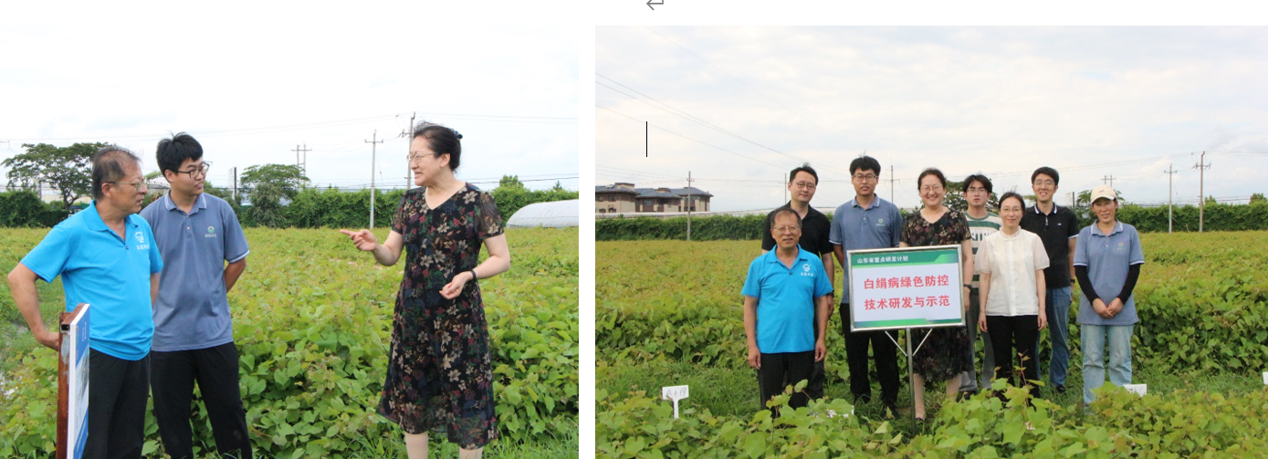 会前,相关人员又参观了青岛农业大学刘新团队创制的基于白绢病绿色防控的葡萄绿色栽培关键技术示范园,就利用生物技术进行葡萄苗木管理并进行了现场指导。